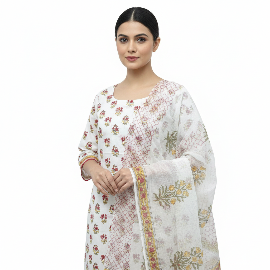 🌸 Elegant Floral Printed Kurta Set with Dupatta – Grace in Every Thread